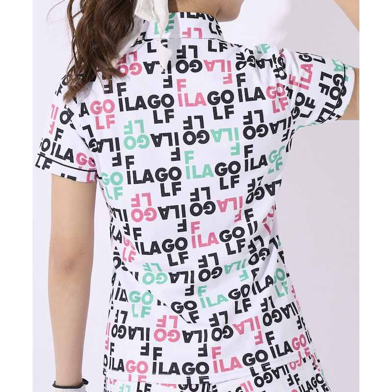 「FILA GOLF」をアレンジしたタイポグラフィ柄の半袖シャツ。
