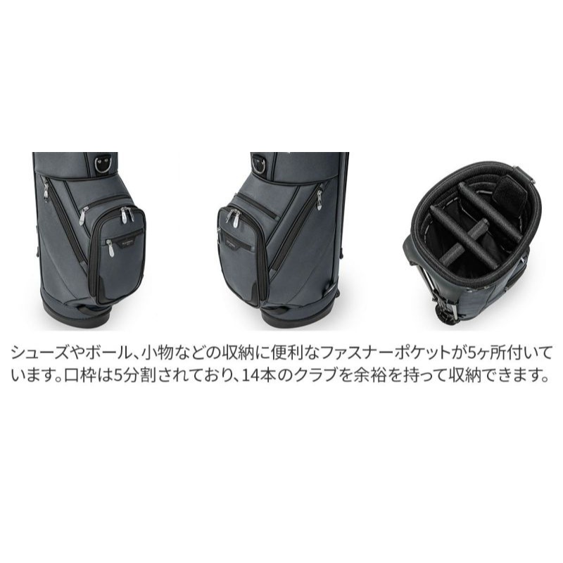 ・また口枠は5枠、クラブは14本収納、バッグ外側にはファスナー付きポケットが5つも備わっており、抜群の機能性。