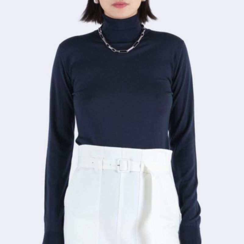 素材の良さが引き立つシンプルなデザインのタートルネックニット。伸縮性のあるハイゲージ素材で軽量性と吸湿性が魅力。